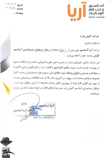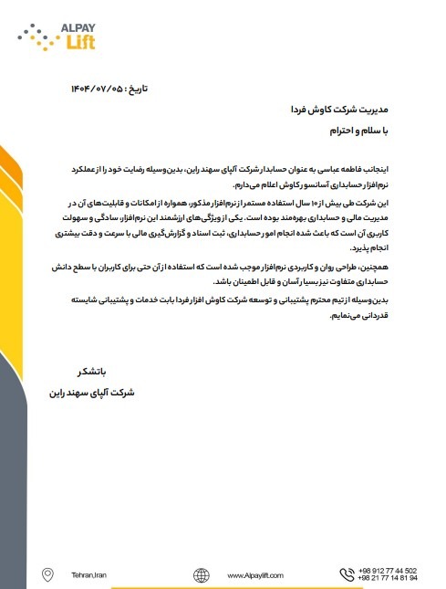 رضایت نامه نرم افزار حسابداری پیمانکاری