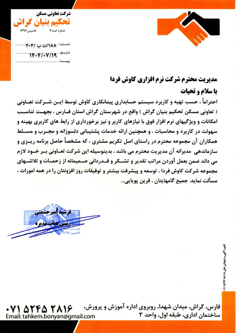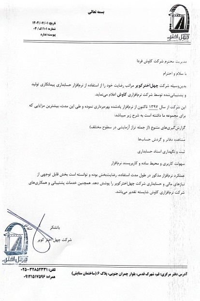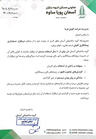 شما میتوانید رضایت کاربرانی که از نرم افزار حسابداری پیمانکاری کاوش استفاده می کنند را ببینید و یا بشنوید.